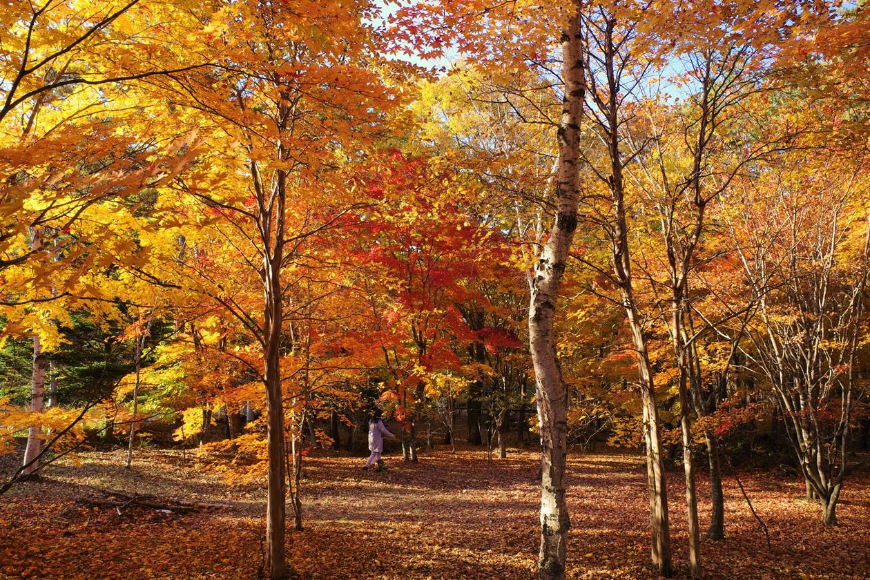 落葉松の規模がとにかく凄まじくて、これだけ密度の濃い紅葉っていうのもなかなか見れない気がします。