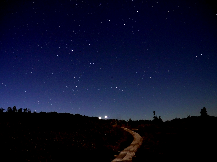 目的は山頂から眺めるご来光。帰りの渋滞を避けるために午前中で終えようと、夜中の3時過ぎに桜平駐車場をスタート。
