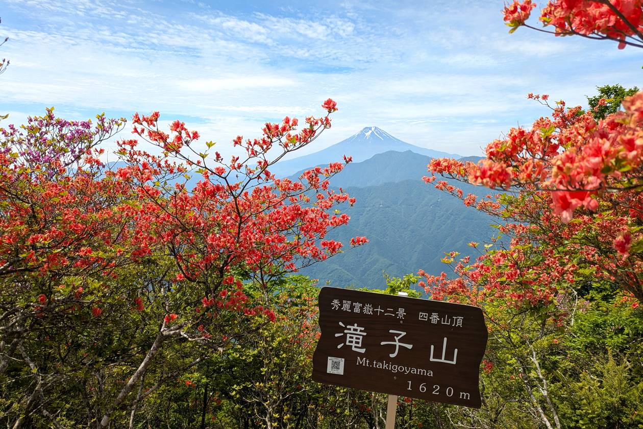 山頂で見た満開のつつじと富士山の景色を含めて、変化に富んだコースは非常に面白かったです。
