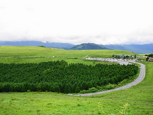 10分ほどで、ロープウェイ降り場の「天神平」に到着!きれいな青空が広がっていて、吹く風も涼しく非常に気持ちいい~。冬場はゲレンデとなるのか、あたり一面芝生が広がっていて、景色も◎