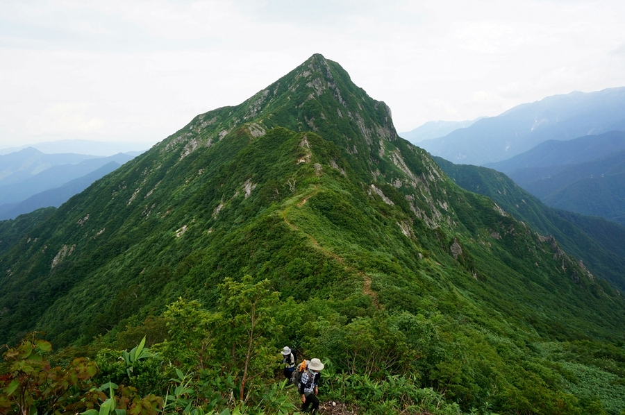 ここでしばらく休憩していると、上から降りてくる登山客が。話を聞くと、山頂の小屋で1泊していたようで、今から行けばまだ展望も良いとのこと。急ぐべし!!