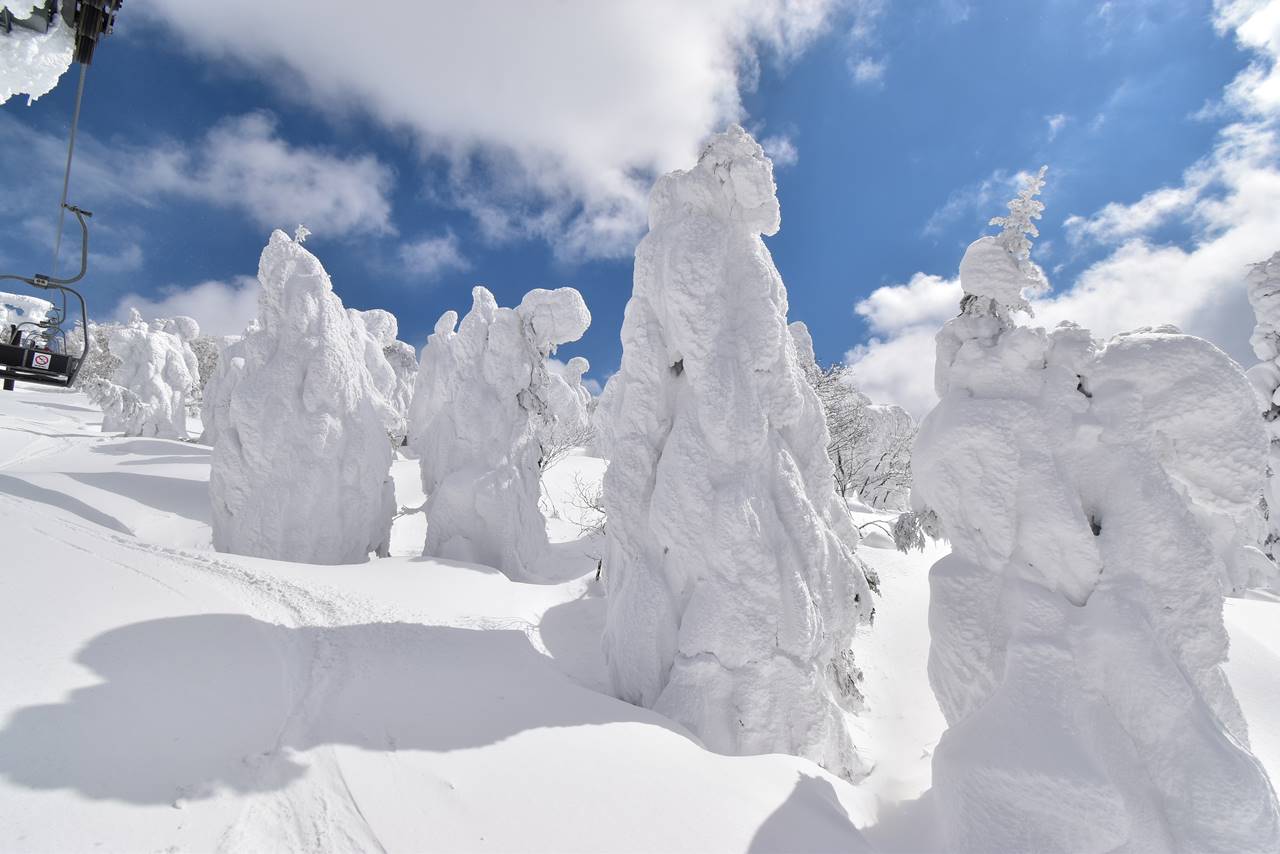 登山口に行くまでの街歩きからすでに雪国で、濃い霧も合わさって神秘的な光景でした。