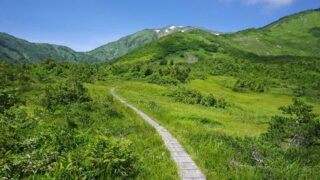 登山 【北アルプス】蓮華温泉から朝日岳へ(五輪尾根ルート) バスで行く夏の縦走登山 北アルプスの朝日岳へ五輪尾根ルートで登ってきました。糸魚川駅からのバスを使って蓮華温泉からスタート。長い登りが続きますが、水場が豊富で高山植物もたくさん咲いていました。朝日岳山頂からは富山湾を一望!宿泊した朝日小屋の夕食も美味しかったです。 2024.08.05 登山